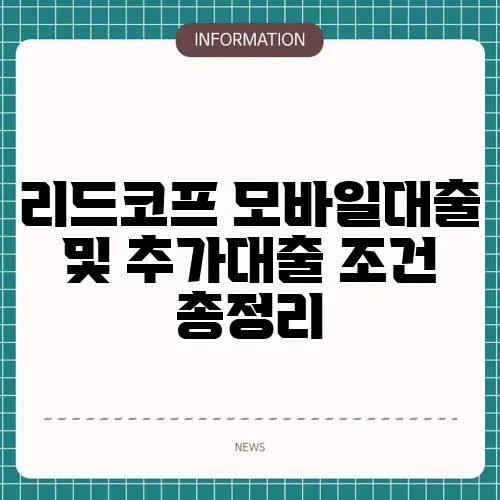 리드코프 모바일대출 및 추가대출 조건 총정리