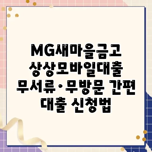 MG새마을금고 상상모바일대출 무서류·무방문 간편 대출 신청법